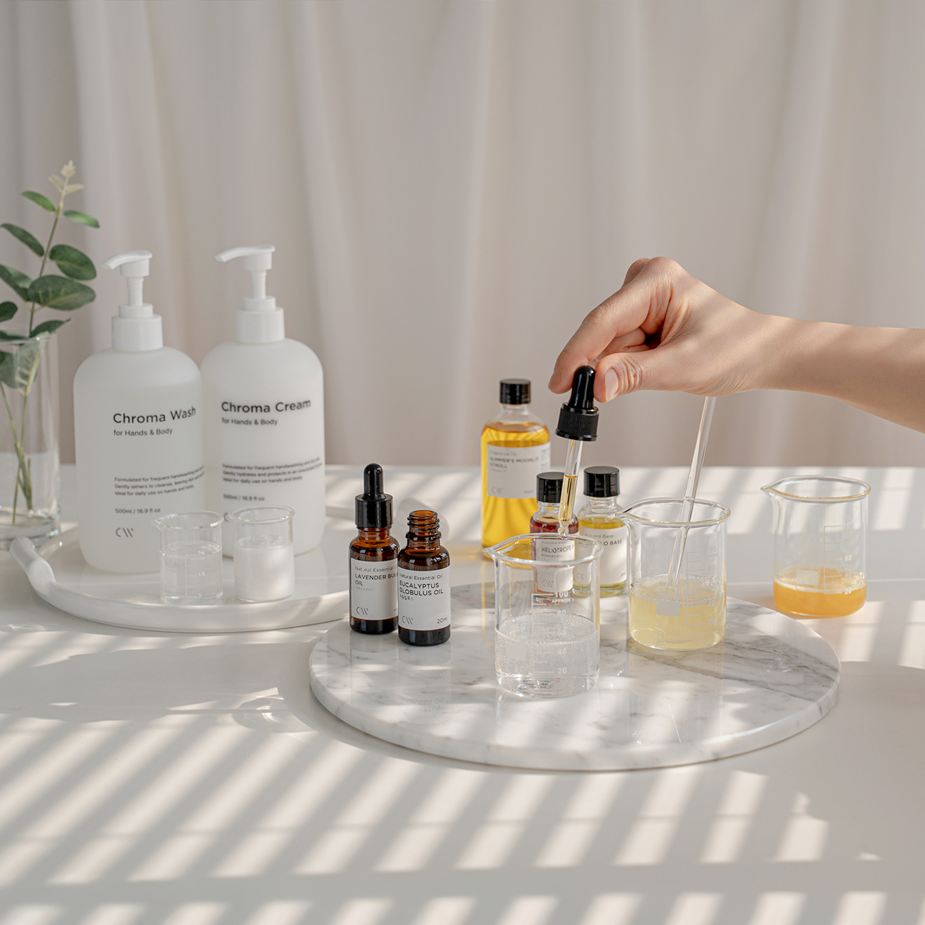 퍼퓸 핸드워시에 활용하기 좋은 천연 원료 블렌딩 조합과 부향 비율 가이드를 소개합니다. 복잡한 추가 공정 없이 베이스와 향료만으로 원하는 퍼퓸 워시를 빠르게 제작할 수 있습니다.
