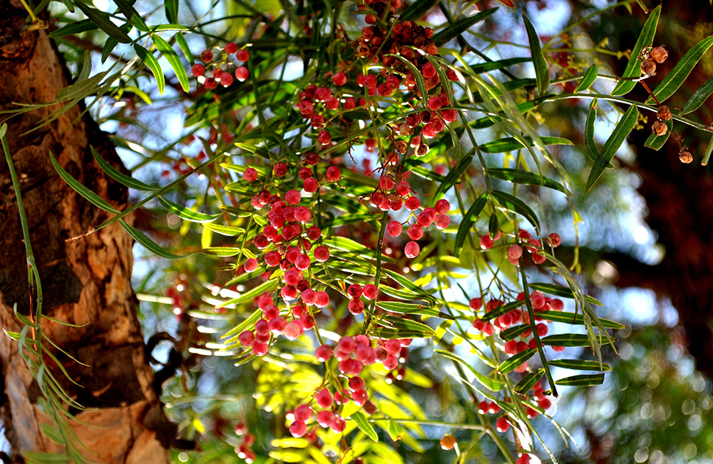 5~7mm 크기의 밝은 핑크빛 열매를 수확해 향신료나 향료, 특히 중남미 전통술인 발효 옥수수맥주 '치차(Chicha)'를 만드는데에도 쓰입니다.