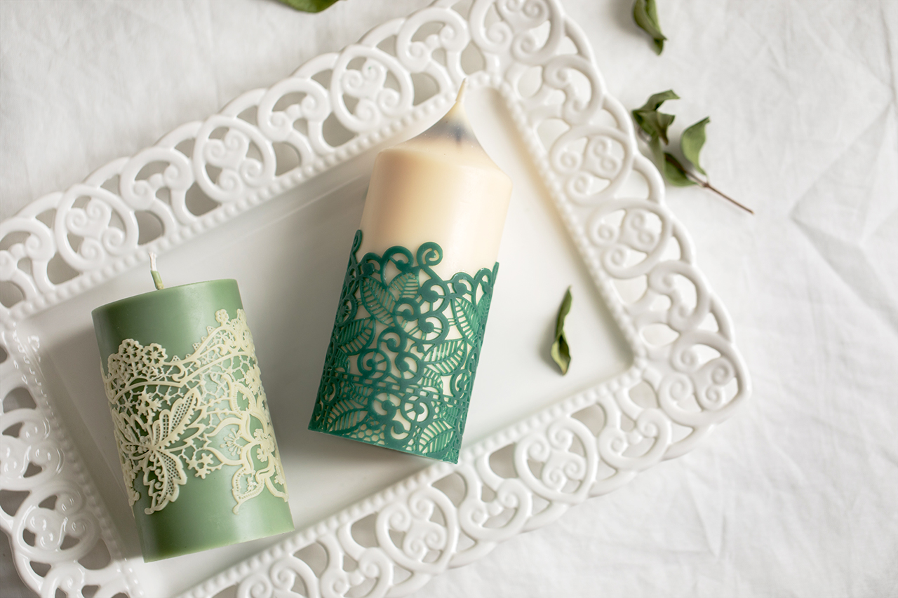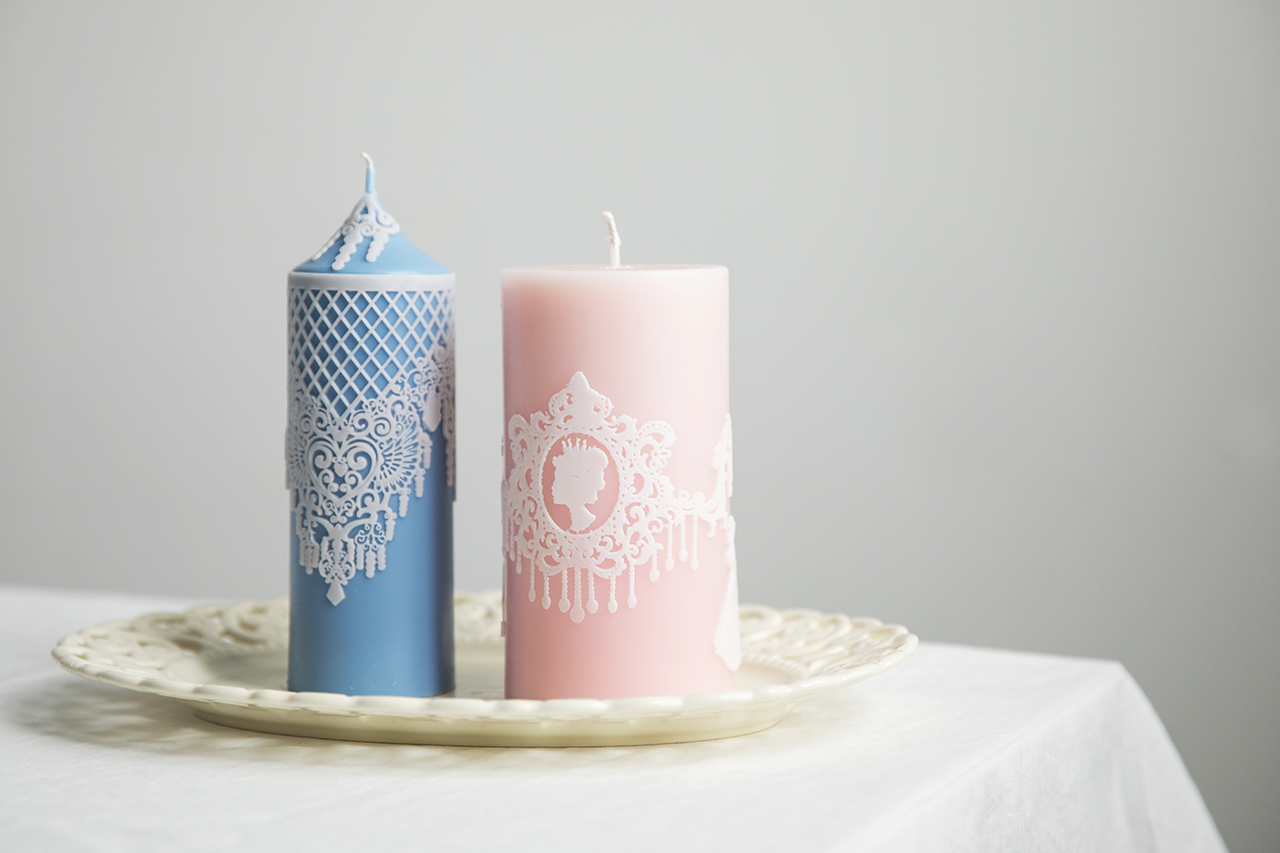 커리큘럼 레이스 캔들 2작품 끊어지지 않고 길게 뽑히는 레이스 왁스 제작, 탈형, 부착, 기타 재료를 이용한 컬러링에 대한 노하우를 포함합니다.