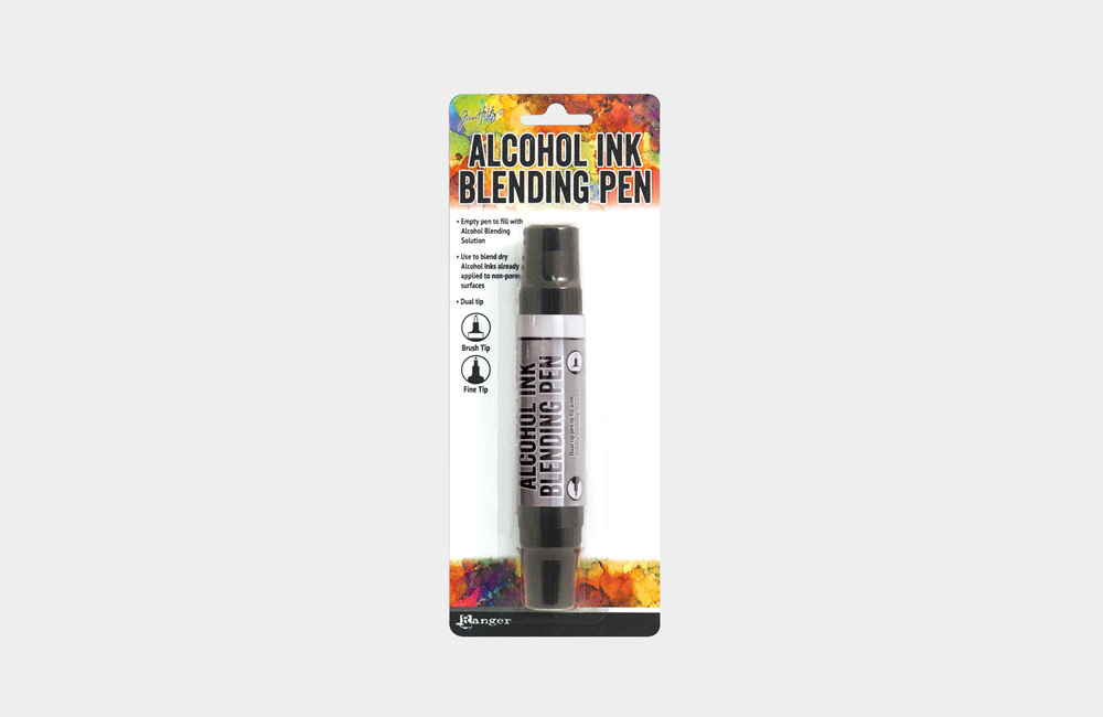 약 15ml로 되어있으며 알코올 잉크 블렌딩 펜은 위아래 양쪽으로 각각 브러쉬 타입과 파인펜 타입의 팁이 달려 있습니다.